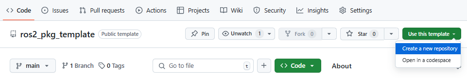 Use this templatebutton, and then selectCreate a new repositoryfrom the dropdown menu.