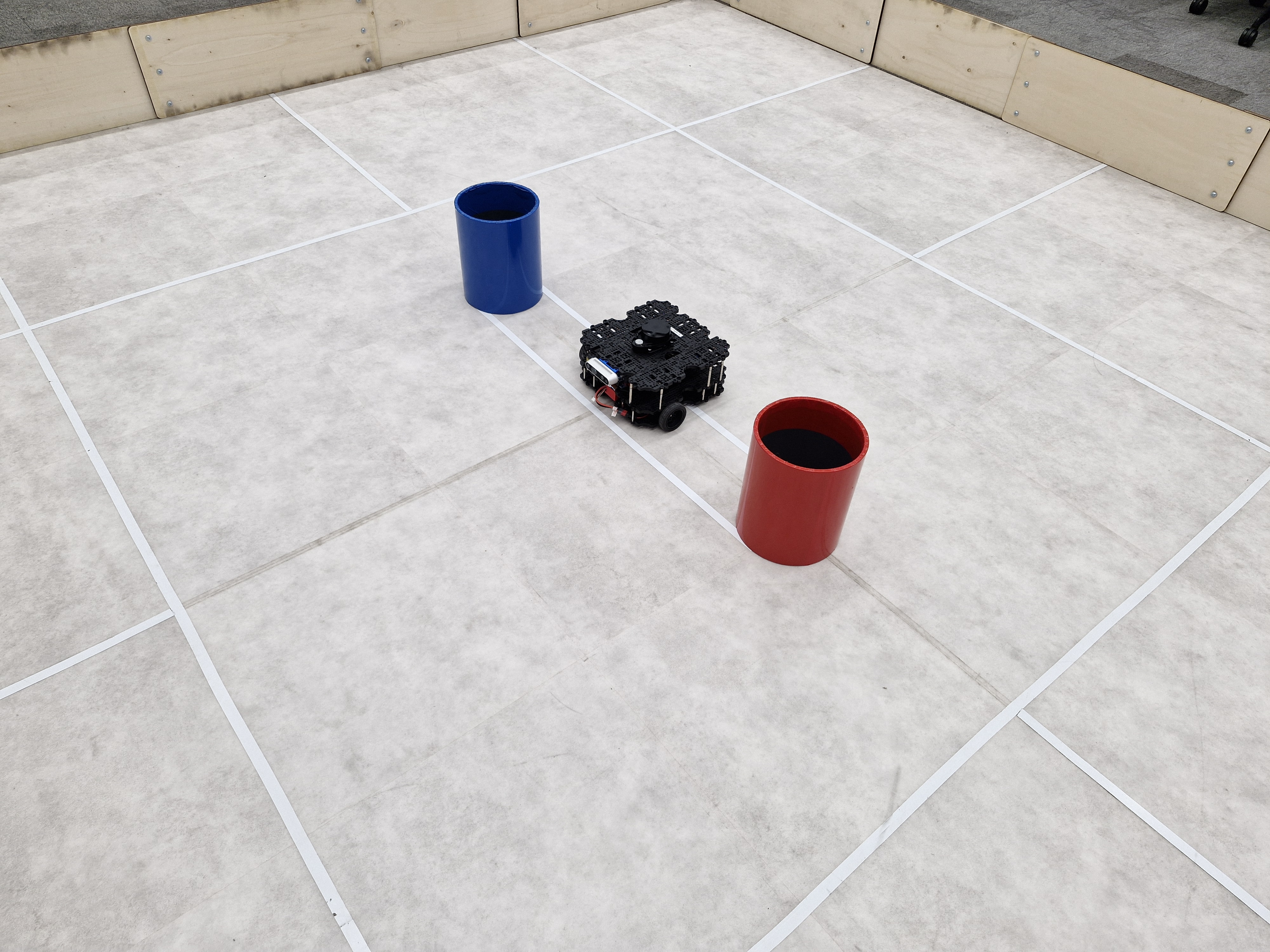 | A4: Stopping | Once the robot completes its figure of eight, it must stop with both wheels within 10 cm of the start line (as denoted by white tape lines on the floor). | 2 |