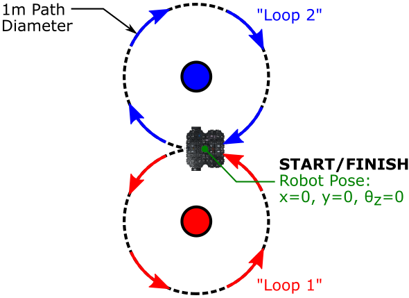 - The robot must start by moving anti-clockwise, following a circular motion path of 1 m diameter ("Loop 1," as shown in the figure above).