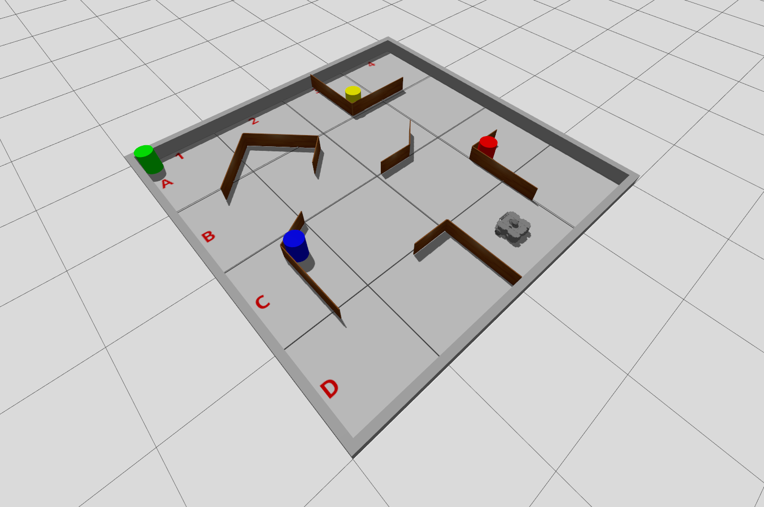 Once again, this is just an example of what the real-world environment could look like. See the notes above for the various ways the environment will vary when this task is assessed in the real robot arena.