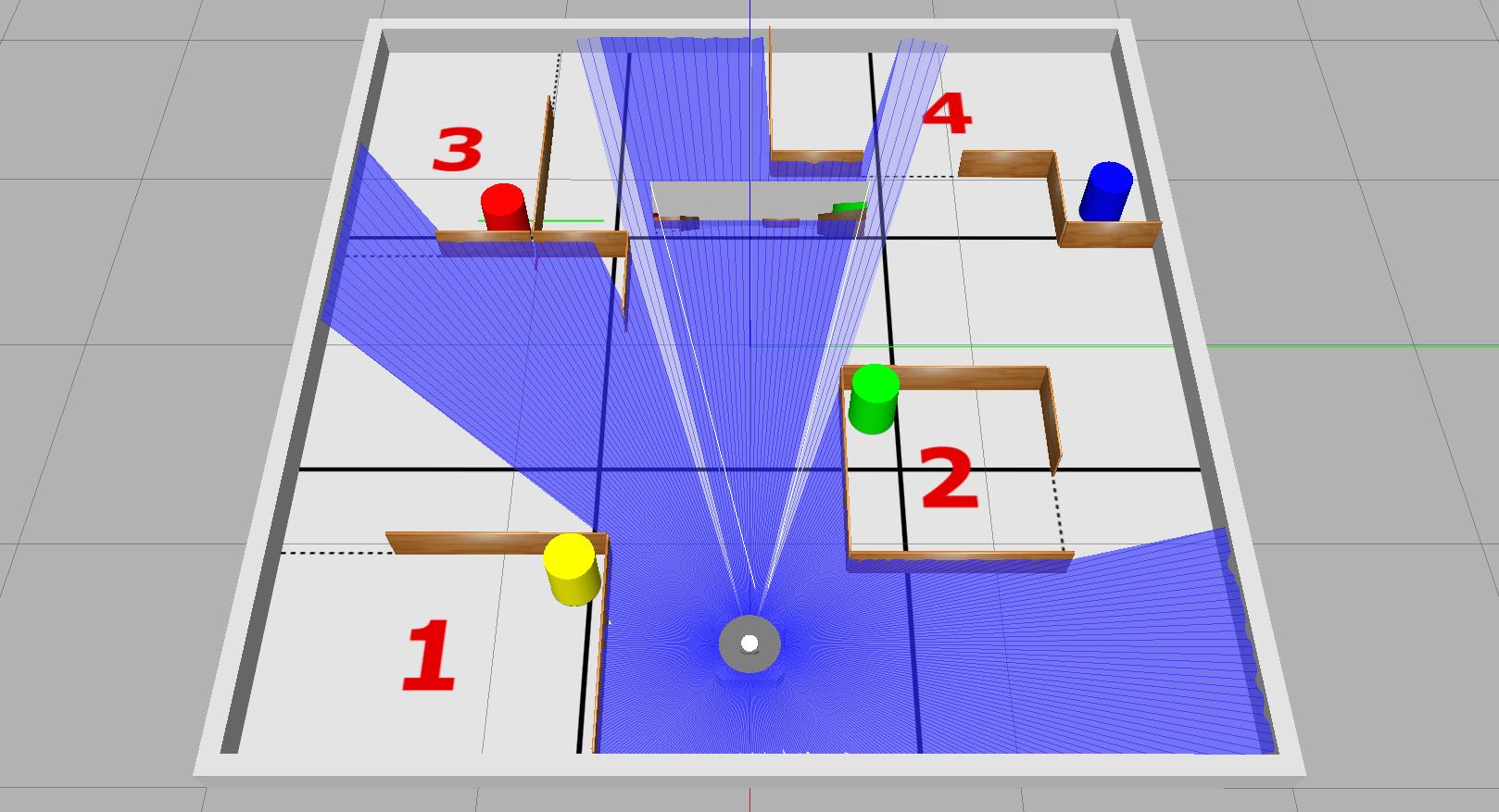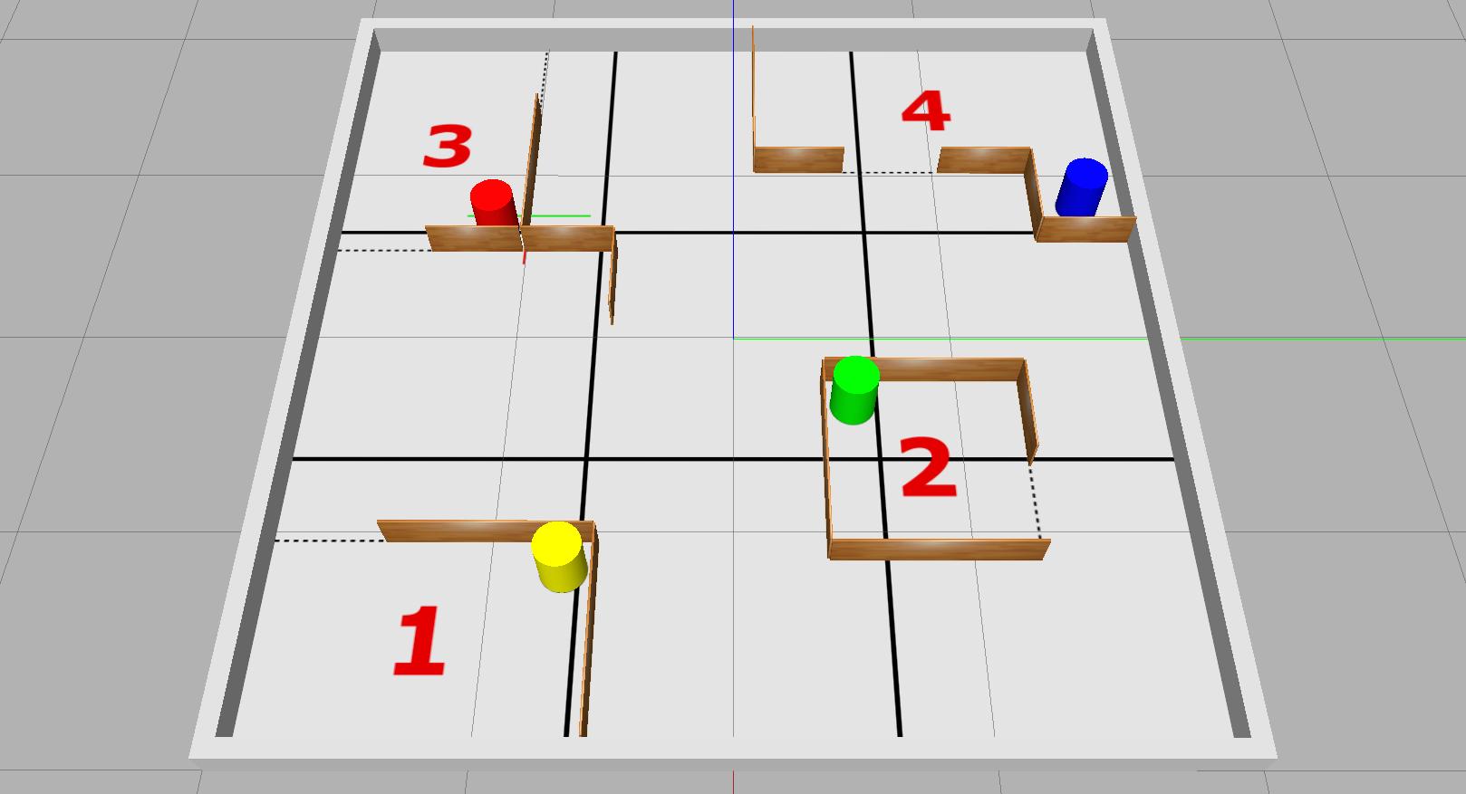- In addition to this, the robot will need to try to explore the four rooms that will also be present in the arena. There will be marks available not only for the number of rooms that the robot manages to explore, but also the speed at which it manages to explore them all (see the marking section below for more details).
