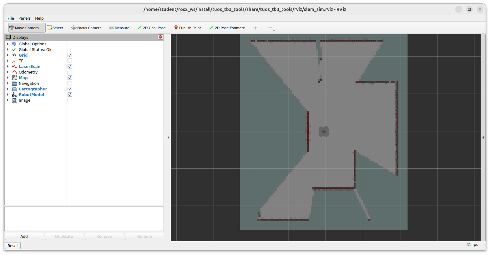 Now launch SLAM to start building a map of this environment. In TERMINAL 2, launch SLAM as follows: