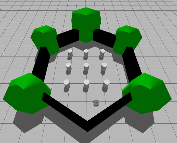 If you leave this for a minute the walls of the arena will start to become visible in RViz, and the floor will start to turn a lighter grey. As time passes the SLAM algorithms become more certain of what is being observed in the environment, allowing the boundaries and the free space to be defined.