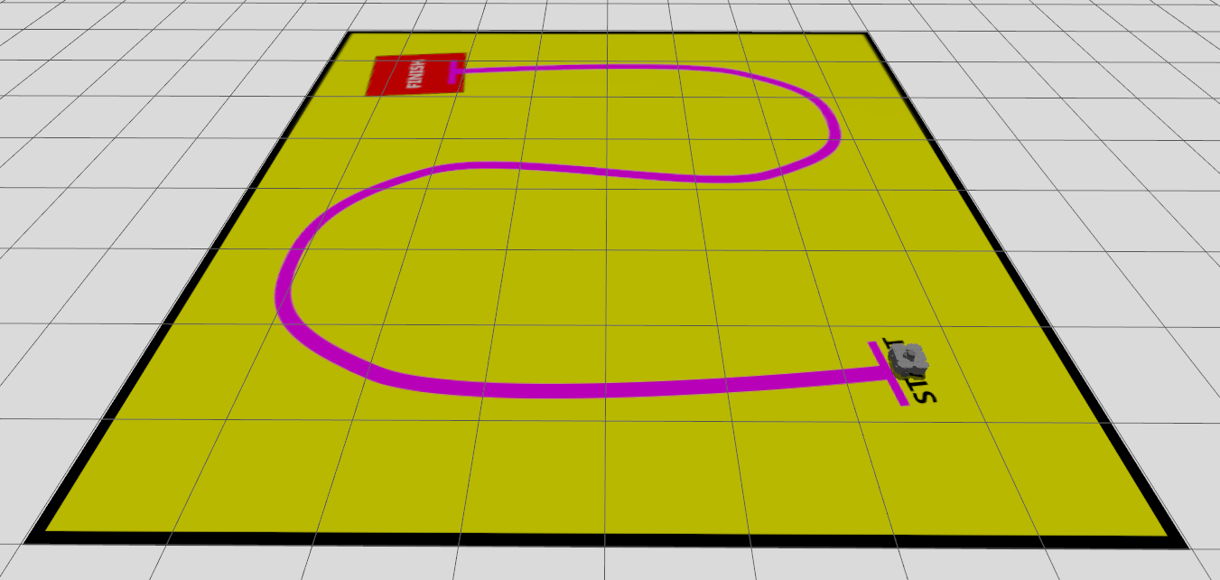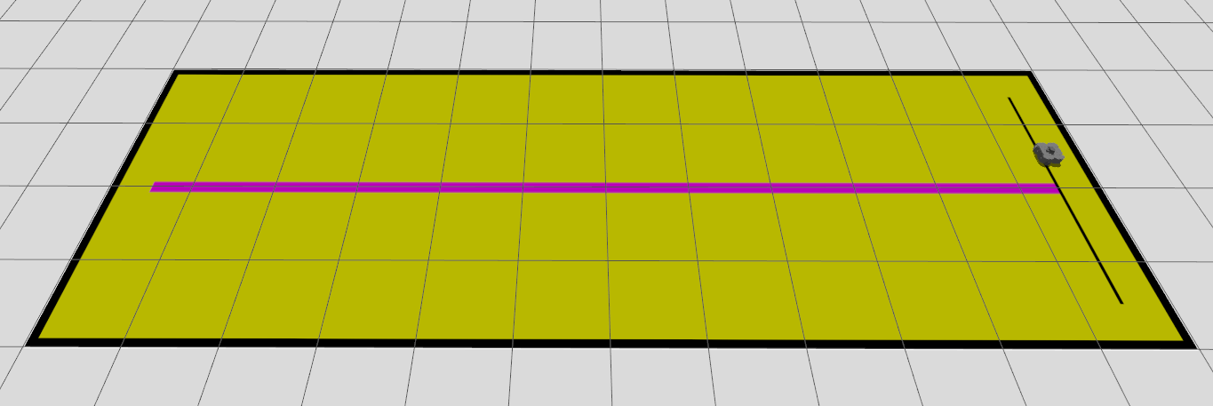 tuos_simulationspackage:Your robot should be launched onto a long thin track with a straight pink line painted down the middle of the floor: