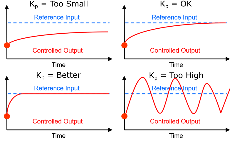 Finally, we need to think about the actual proportional gain that is being applied. This is where we need to actually tune our system by finding a proportional gain value that controls our system appropriately.