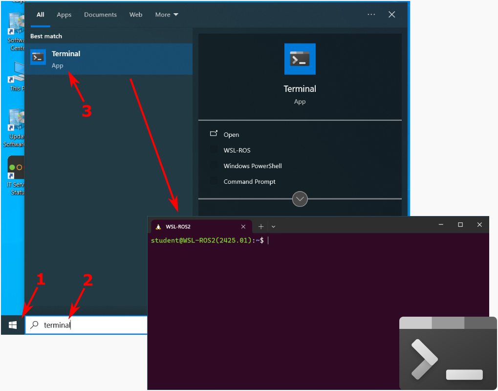 You should now be able to launch the WSL-ROS2 environment by launching the Windows Terminal App: