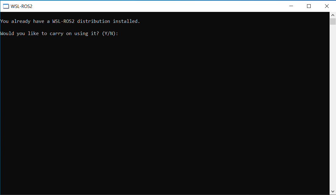 As discussed above, the WSL-ROS2 environment is not preserved on the university managed desktops indefinitely. If you log back in to the same machine within a few hours however, then it may still be there, and you'll be presented with the following message when you launch it: