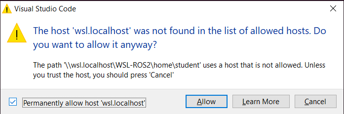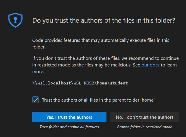 VS Code should then launch, and you'll be presented with another trust dialogue: