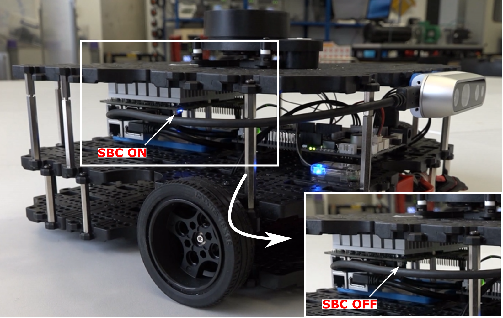 Once the blue light on the corner of the SBC goes out, it's then safe to slide the power button to the left to completely turn off the device.